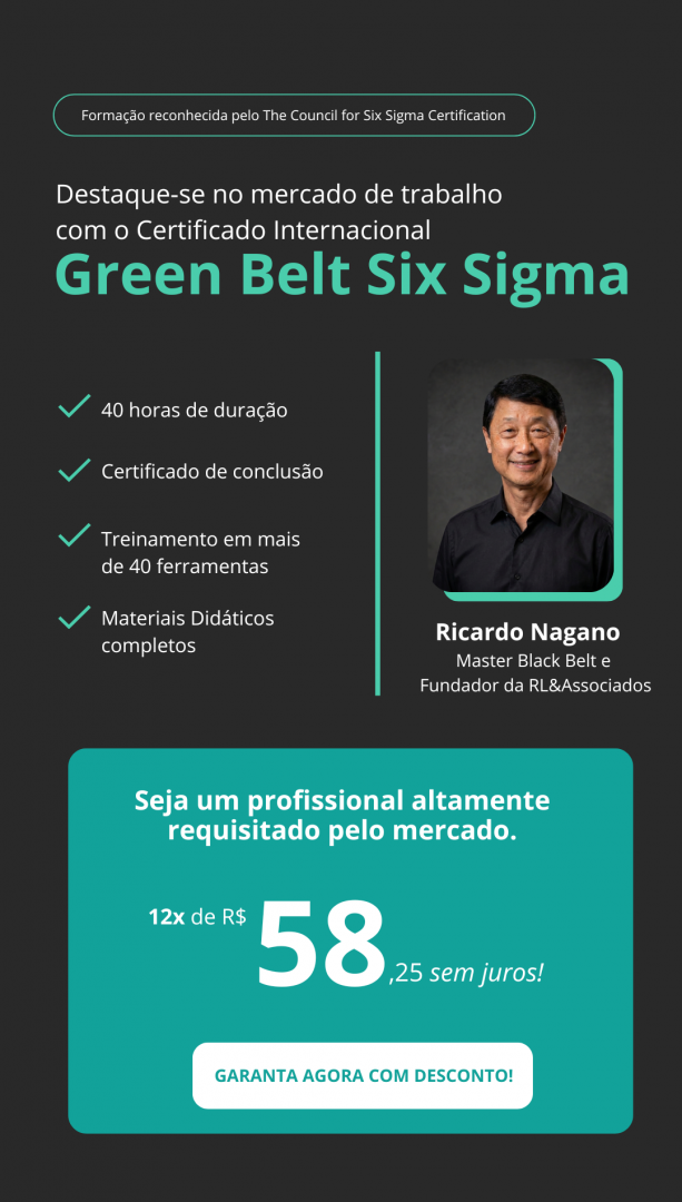 O curso Green Belt 6 Sigma com a RL & Associados tem conteúdo e materiais de apoio muito bons, além da didática do Ricardo Nagano ser espetacular, nota-se que tem total domínio do assunto.